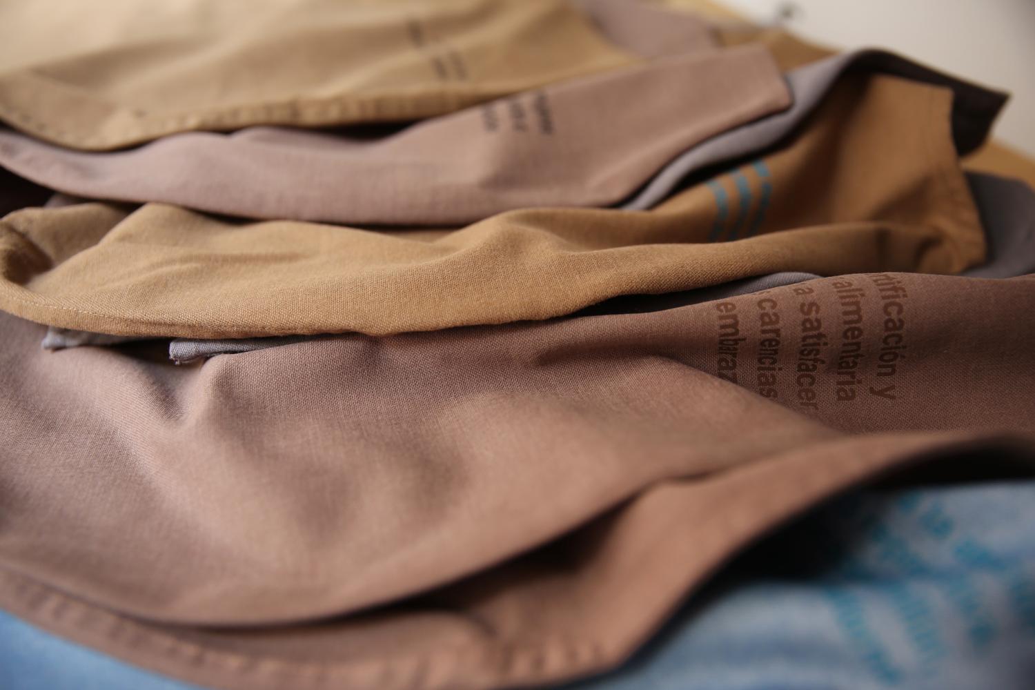 Desde hace años realiza trabajos relacionados con el ámbito de lo textil: impresión en vinilo de corte, bordados, tejidos, diseño y producción de prendas.